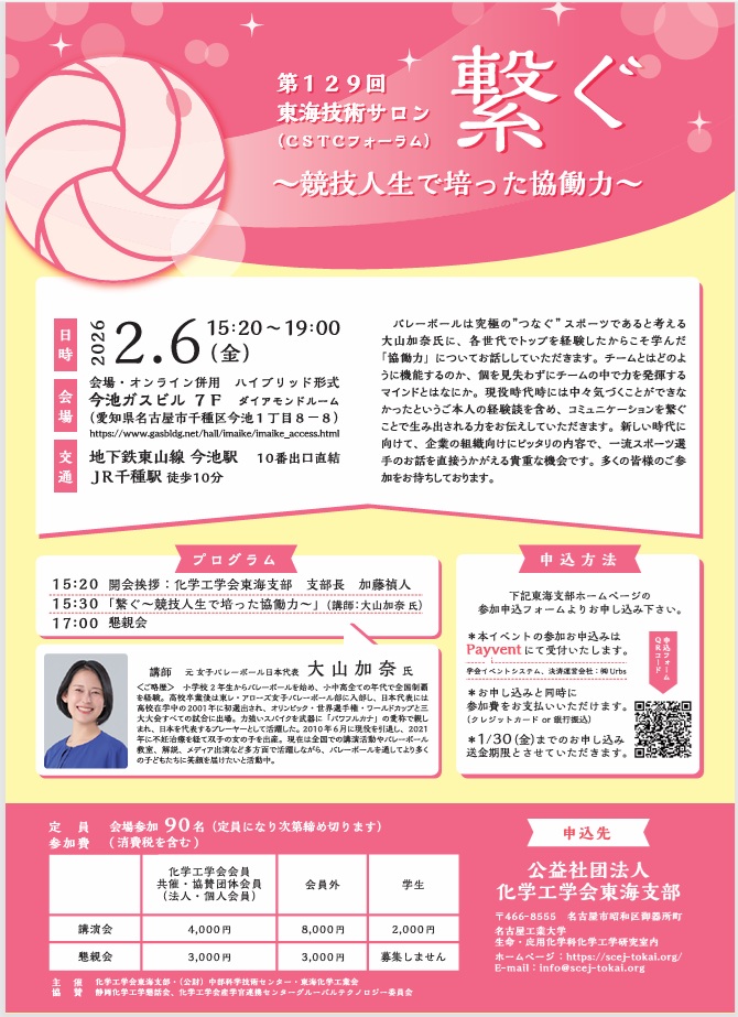 2026年2月6日化学工学会東海支部役員会後の講演会に元女子バレー日本代表の大山加奈さんに来ていただきました。
