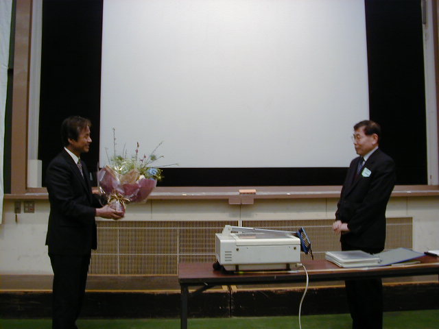 東京理科大望月先生の花束贈呈(佐竹化学機械工業(株)塩原さん)