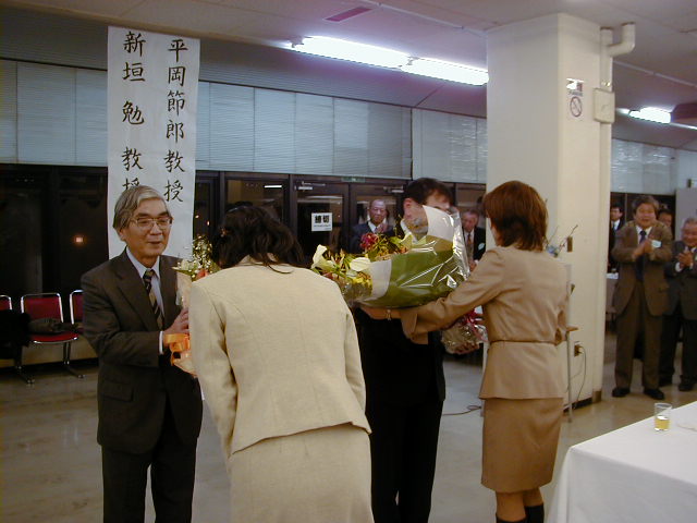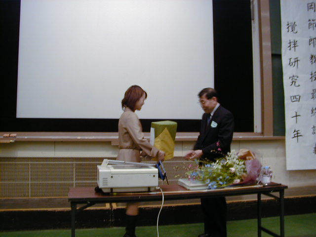 東京理科大望月先生の花束贈呈(佐竹化学機械工業(株)塩原さん)