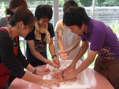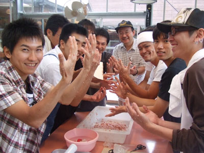 本日のメインイベントであるソーセージ作り開始