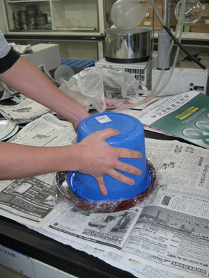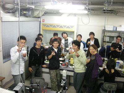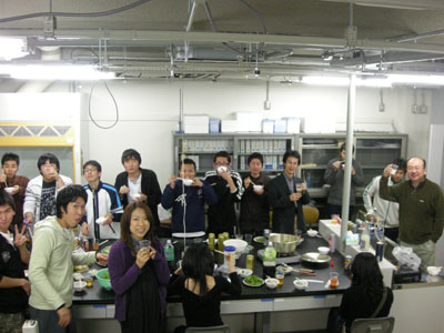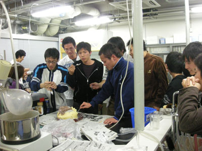 研究室忘年会(鍋会?バケツプリン会?) プリンの素です。今年は黒ゴマプリン&キャラメルミルクプリン。 とにかく冷やして固めます。 バケツプリンの前にまずは鍋会。 バケツプリン登場。無事固まっているのか不安。 若干ひびが入っているのが気になるけど、大丈夫。 プリンに群がる人々。昨年よりは格段においしい証拠。 これで完食 commented by Kitagawa