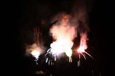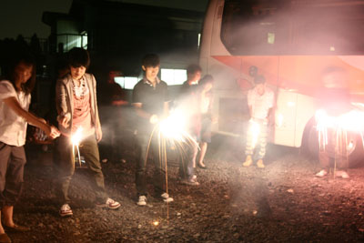 シャッター速度を調節した綺麗な火線。人物がぼけるのはご愛嬌