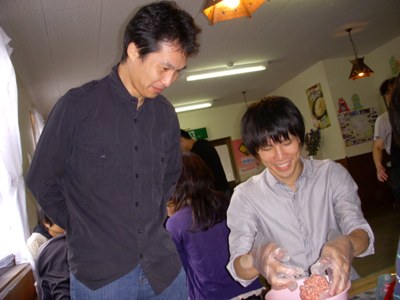ソーセージ作り開始。研究室紹介にありがちな不自然な写真。
