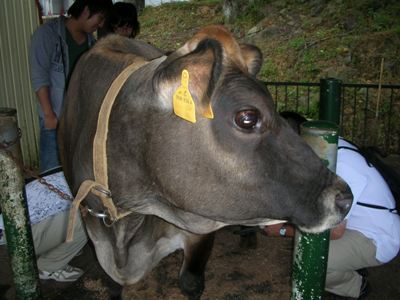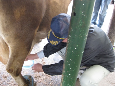 大谷先生搾乳中。当たり前ですが搾りたてはあたたかい。