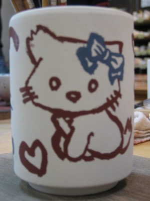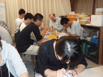 真剣に湯飲みに絵付け中。