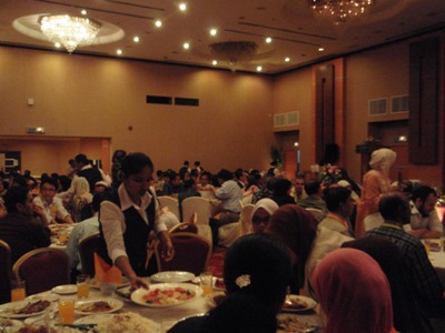 懇親会に相当するディナーパーティ。悲しいことにアルコールがでない。
