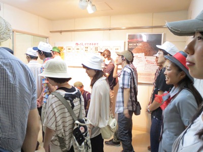 「ほんだし」の原料である鰹節を破砕する工程を見学中。