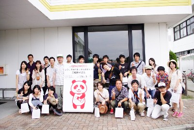 味パンダとともに記念撮影。