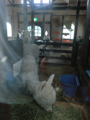 ガラス越しなので見づらいですが目玉商品のアルパカ×2です。
