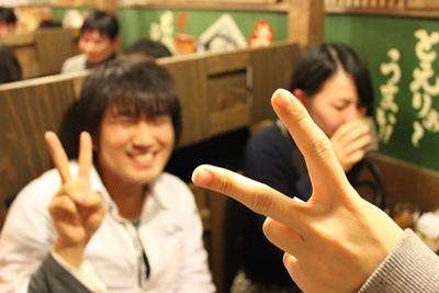 新入生歓迎会 乾杯のシーンは飛ばして、すでに新歓中です。 後ろにはたくさんのお酒。 今回は席がばらばらでした。 ザリガニではないと思います。 なんか、妙に投げやりなピースが・・・ 正統派ピース。もちろん手に焦点を合わせています。 一年間頑張っていきましょう。 commented by Kitagawa