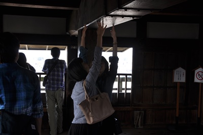 模型の中に忍者・くのいち・イヌ・鶏の模型が隠されています。
