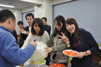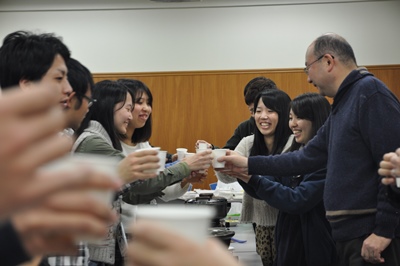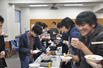 恒例の忘年会=鍋会です。大谷先生の乾杯でスタート