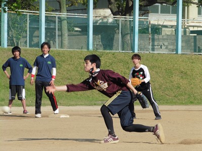 名古屋工業大学アナリスト杯 ソフトボール大会 今年で9回目となる湯地研vs.大谷研のソフトボール大会@吹上公園です。 円陣です。気合いを入れます。 敵将・湯地先生もお忙しい中途中から参加です。 昨年度までの剛速球投手がいなくなったので、とりあえず打ちます。 そして、走って点を取ります。 もちろん投げて押さえます。 三年間連続で投手です。 In conclsion, 優勝カップを手に入れました♪ 最終的には14対7での勝利でした。 お疲れ様でした。 commented by Kitagawa
