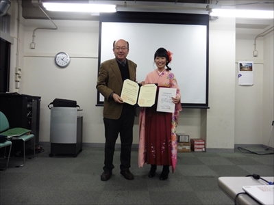 学部生も卒業証書をもらいます。おまけ(日本化学会東海支部長賞)付きです。