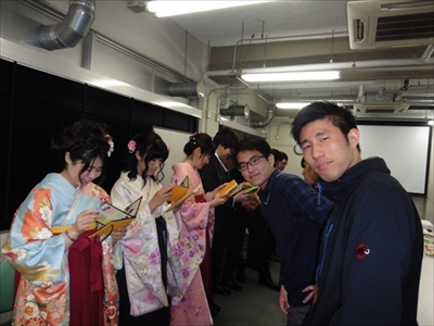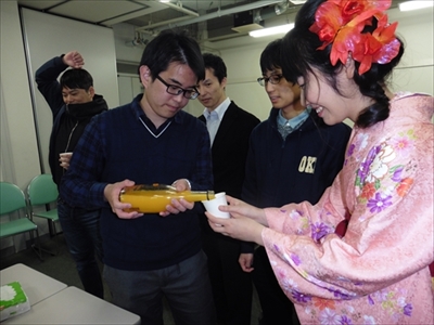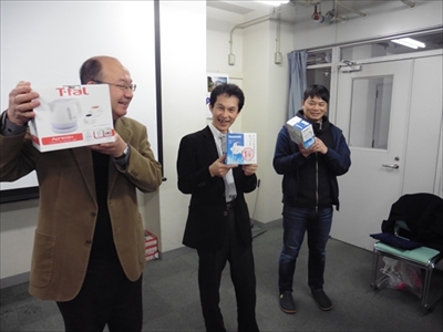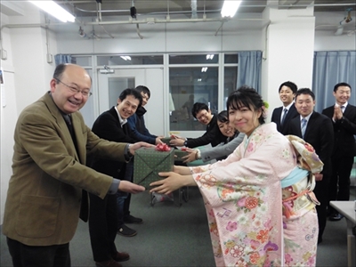 研究室を去るメンバーへの記念品贈呈です。