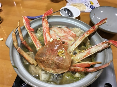 >今年の目玉。カニ鍋。金箔付きです。