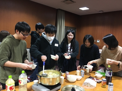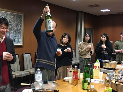 恒例の忘年会=鍋会です。大谷先生の乾杯でスタートです。