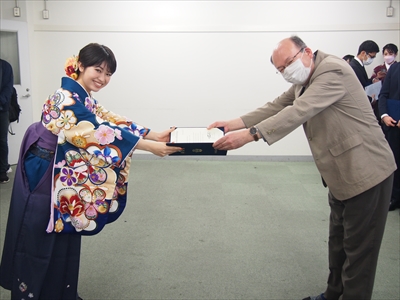 例によって指導教員からそれぞれ修了証書・卒業証書をもらいます。