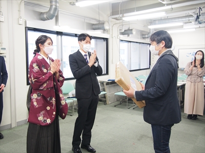 卒業生・修了生からの研究室への贈り物の儀です。