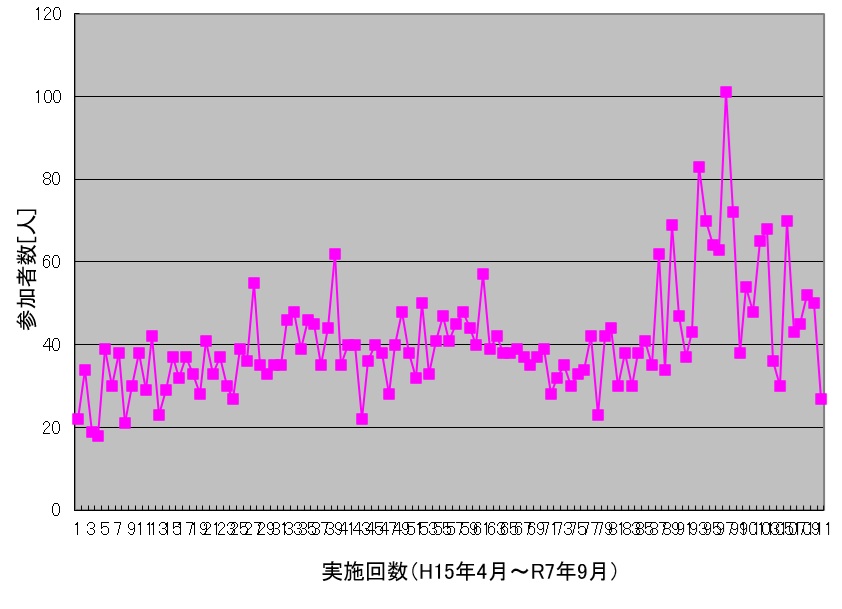 コンスタントに40人以上の参加者を数え、しかも毎回新規参加者を多数迎えています。