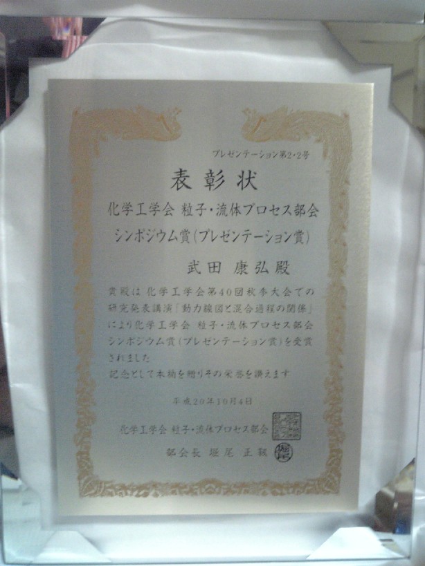 ●化学工学会第40回秋季大会 粒子・流体プロセス部会シンポジウム賞