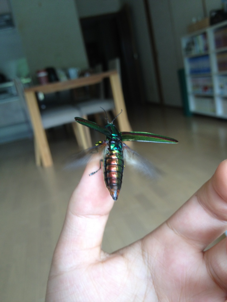 タマムシが飛び立つ瞬間です。