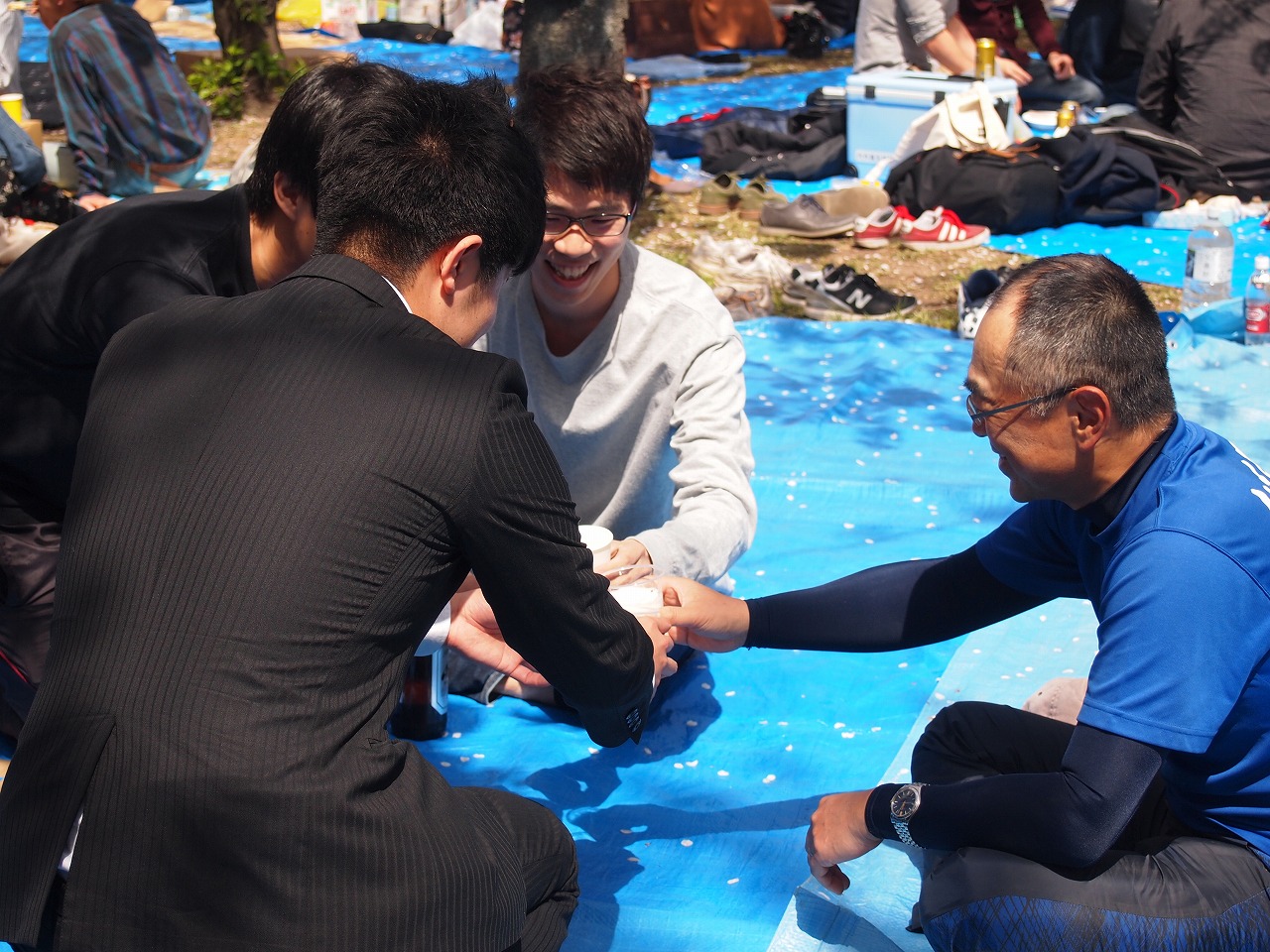 お花見当日(フライング):スーツのうつみはこのあとすぐ(乾杯前に)結婚式へ