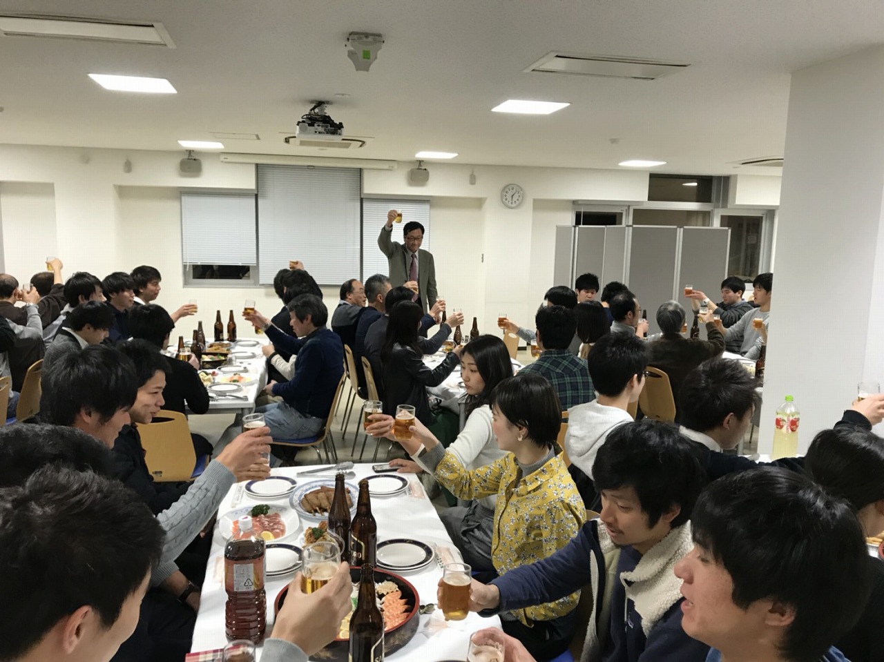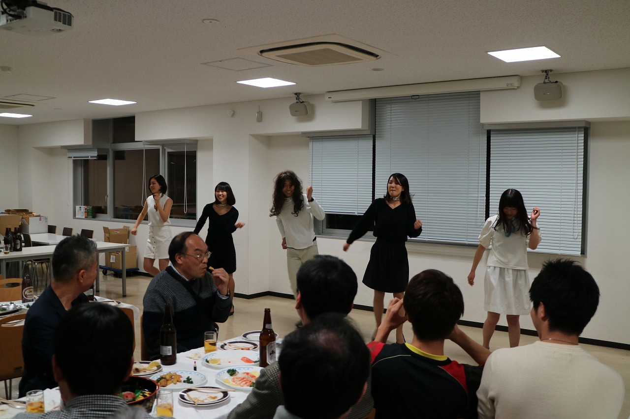 岩田先生、桂川さんと新入部員達