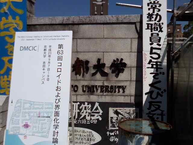 平成23年9月7日〜9日、京都大学吉田キャンパスにて、「コロイドおよび界面化学討論会」が行なわれました。