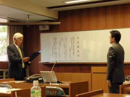 授賞式(平下恒久助教) 授賞式(山本靖助教)