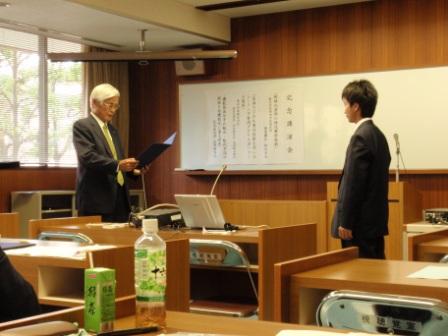 賞状(山本靖助教)