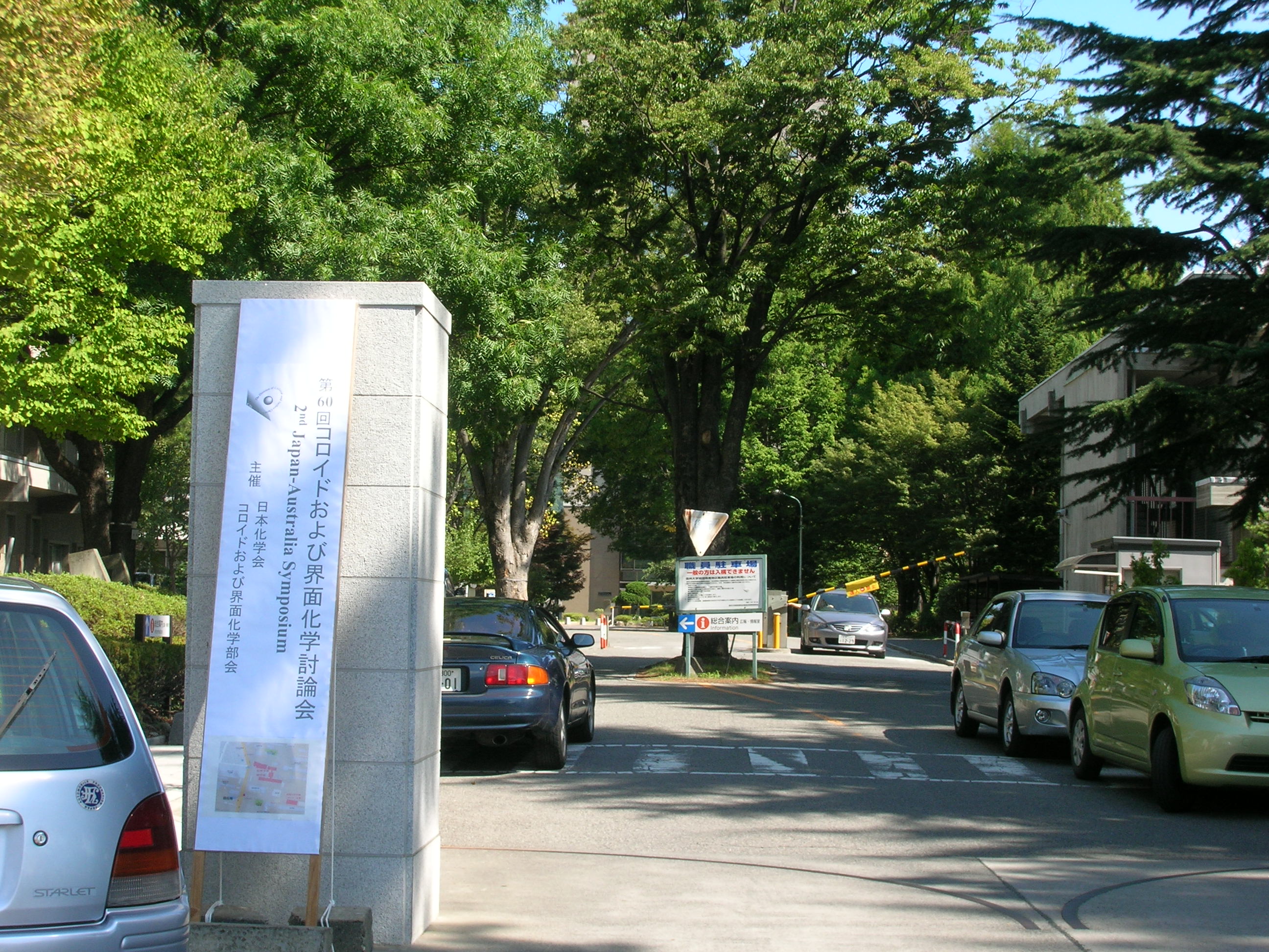 信州大学正門 荒川陽祐氏の発表の様子 1 荒川陽祐氏の発表の様子 2 D. C. Prieve教授(Carnegie Mellon大、左側)とR. Naaman教授(Weizmann工科大、右側)の表彰式 松本城 まつもと市民芸術館