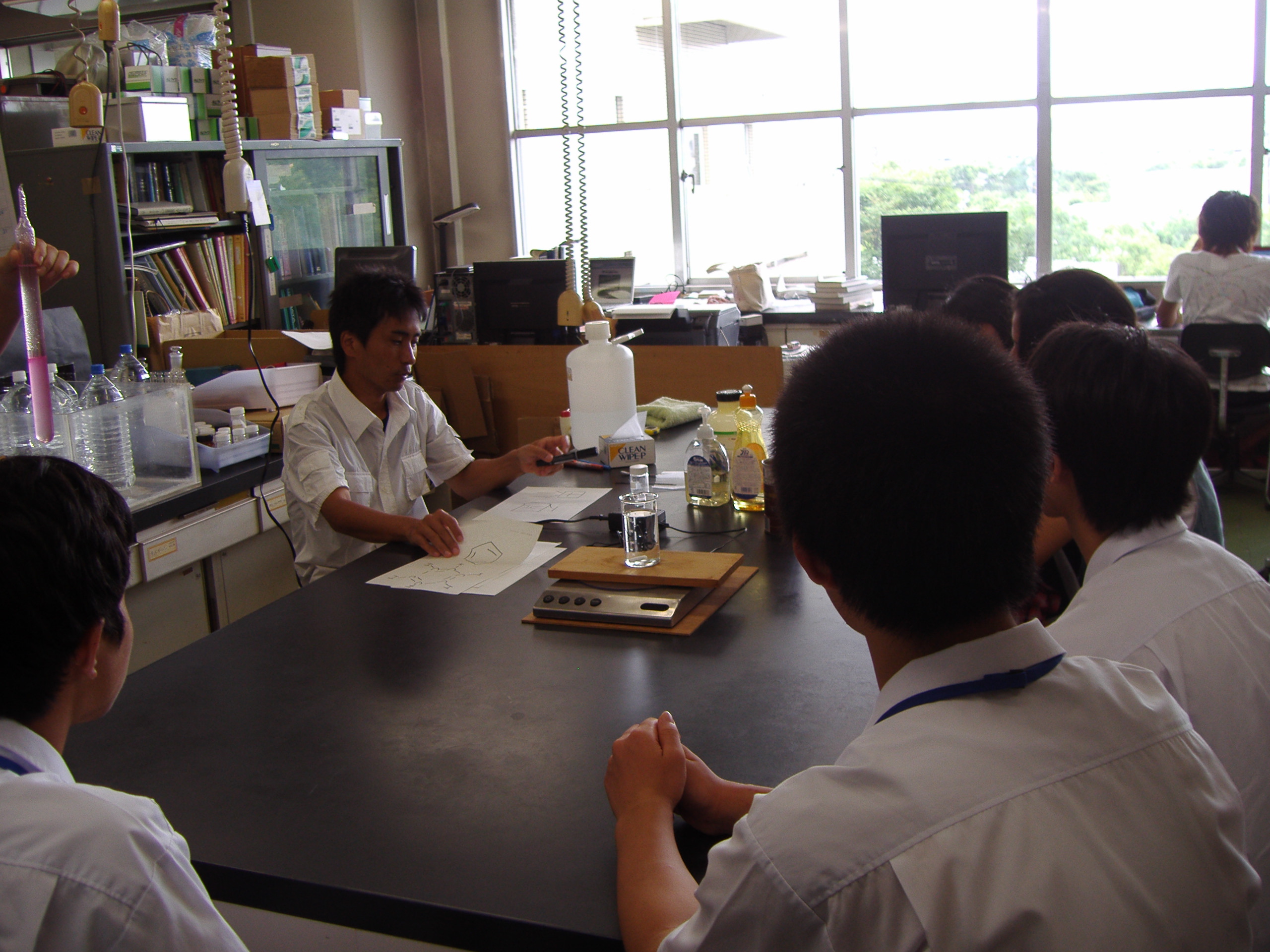 研究室見学会の様子。山本先生による実演