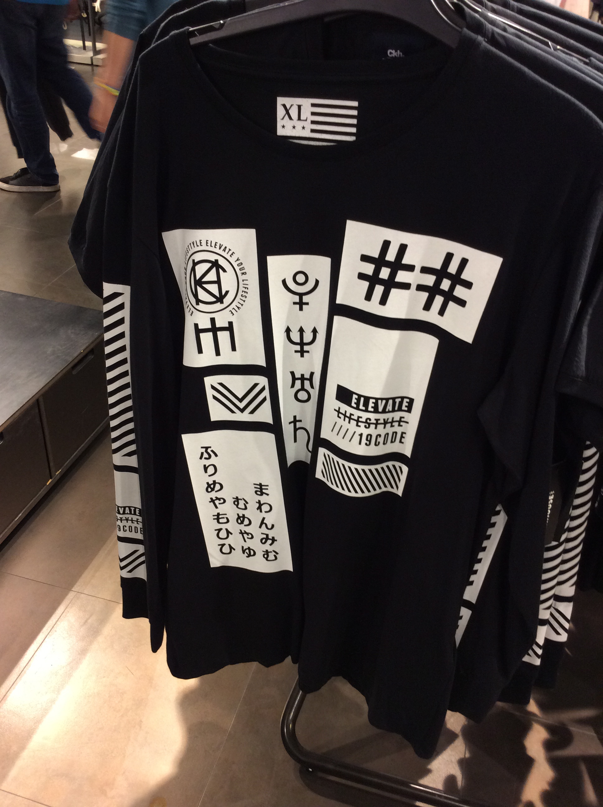 ショップに売られていたTシャツ。ひらがなの意味が分からない…。